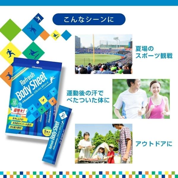 運動後のクールダウンにリフレッシュボディシート5枚入り×48個 1枚で全身ふける冷却シート! 汗拭きシート 暑さ対策 熱中症 スポーツ 久光製薬
