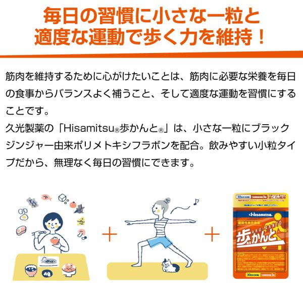 Hisamitsu 歩かんと 90粒×3袋 ブラックジンジャー ロコモ 機能性表示食品 足腰の筋肉 足の筋肉 黒ショウガ ロイシン HMB 筋肉 骨成分 久光製薬