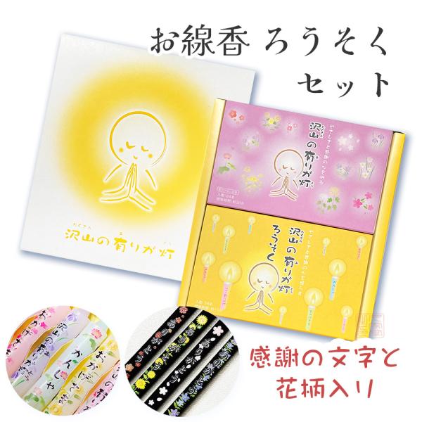 【ギフトセット】沢山の有りが灯(ありがとう)線香&ろうそく 平箱 花柄入り/丸叶むらた