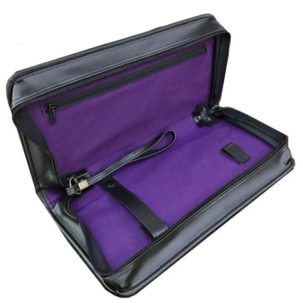 中啓と念珠が一緒に収納できる持ち運びに便利なケースです。素材は合成皮革を使用しています。中啓や念珠のみにあらず、多種多様にお使いいただけます。約縦35cm×横15.5cm×厚さ5cm