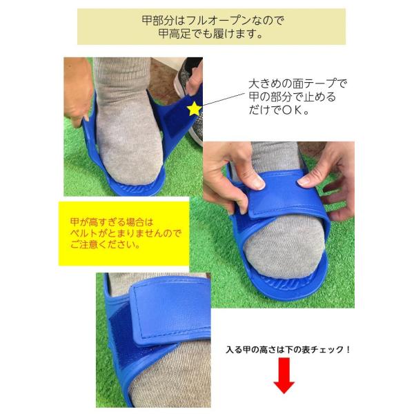 低反発ソールで足にかかる衝撃を吸収します。面ファスナー付きですので調節も簡単に行えます。