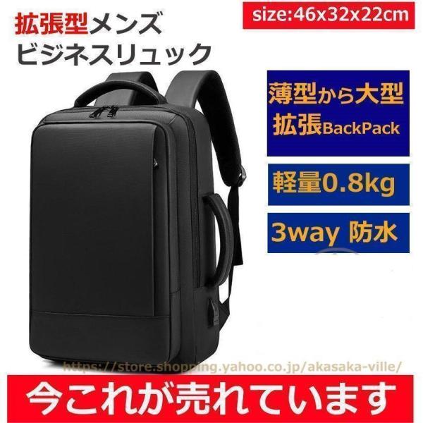リュック メンズ ビジネスリュック 大容量リュックサック 通勤 通学 ビジネス バックパック スリム パソコン 拡張 鞄 カバン 防水 3WAY 軽量