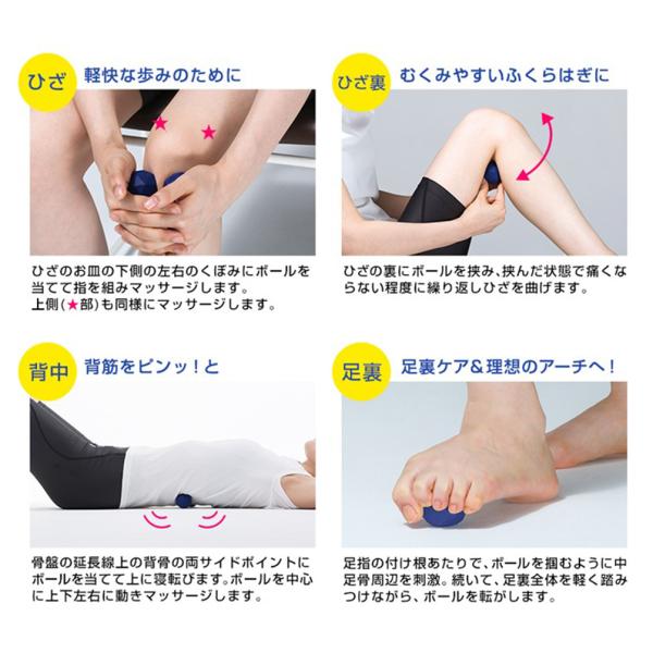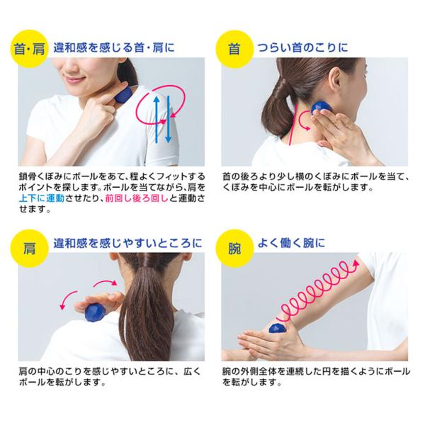 手のひらやカラダでころころと転がすようにセルフマッサージをすることで程よい刺激を与えます。
