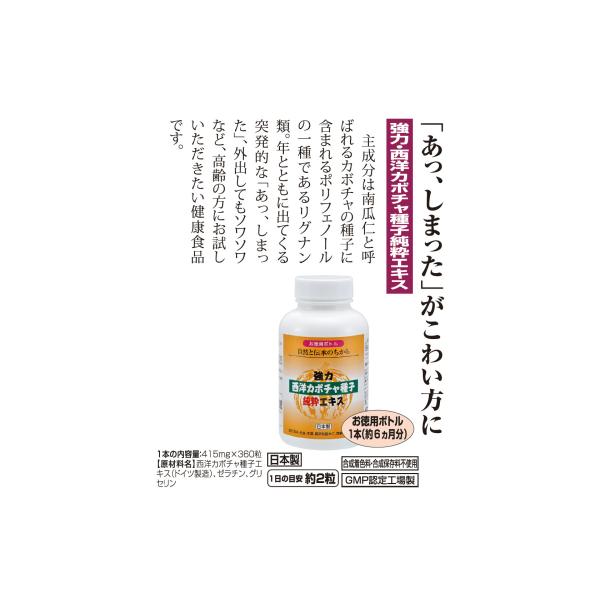 強力・西洋カボチャ種子純粋エキス 大容量 お得なファミリーボトル 1本 約6ヶ月