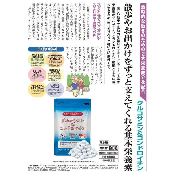 サプリ グルコサミン & コンドロイチン 3袋セット 1日8粒でグルコサミン1280mg サメ軟骨抽出物140mg コラーゲンペプチド240mg
