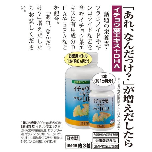 フラボノイド、ギンコライドなどの宝庫イチョウ葉にDHAを配合