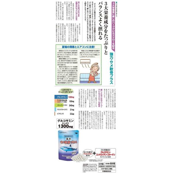 1袋の内容量:330mg×約180粒【原材料名】コラーゲンペプチド、鮫軟骨抽出物粉末(鮫軟骨抽出物、デキストリン)、デビルズクローエキス末、グルコサミン、セルロース、二酸化ケイ素、ステアリン酸Ca、ビタミンD(原材料の一部かに、えび、ゼラチン含む)※アルミ袋でのお届けになりますほほえみ元気クラブ