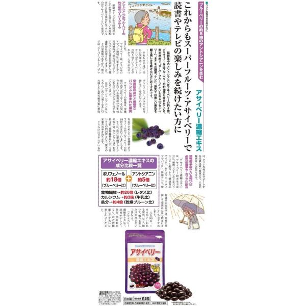 「アサイーベリー濃縮エキス」は、アサイベリー粉末を主成分に、4種類のアントシアニンが含まれるカシスエキス、緑葉類に多く含まれるルテイン、千里眼の木という別名を持つメグスリノキ、ビタミンAの宝庫といわれる八つ目ウナギ、赤色のカロチノイド・アスタキサンチンなどを贅沢に配合した健康食品です。