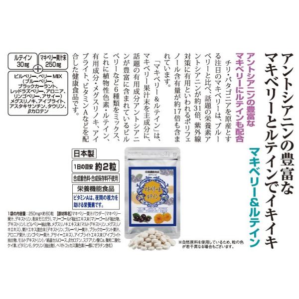 アントシアニン サプリ マキベリー & ルテイン 2袋 (1袋 約60粒)