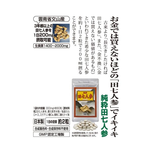 田七人参 サプリメント 田七人参 サプリ 純粋田七人参 2袋