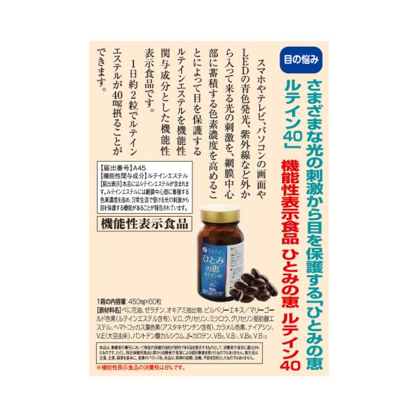 機能性表示食品 ルテイン、機能性食品 ルテイン、ルテイン、ルテイン40、ひとみ、目、ルテインエステル