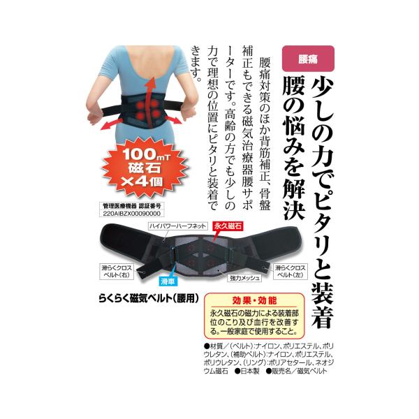 らくらく磁気ベルト 腰用 L-LLサイズ 腰サポーター 管理医療機器 医療用 効果 高齢者 腰痛対策 背筋補正 骨盤補正 健康グッズ 血行促進