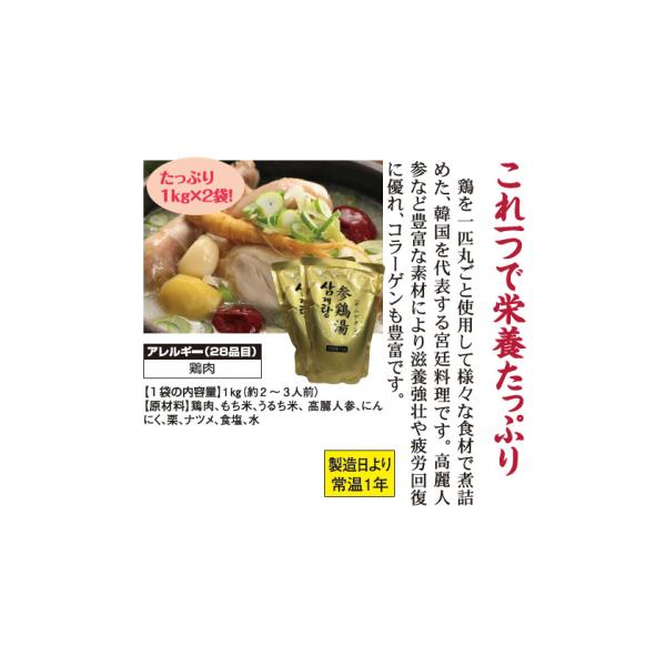 【原材料名】鶏肉、もち米、うるち米、 高麗人参、にんにく、栗、ナツメ、食塩、水