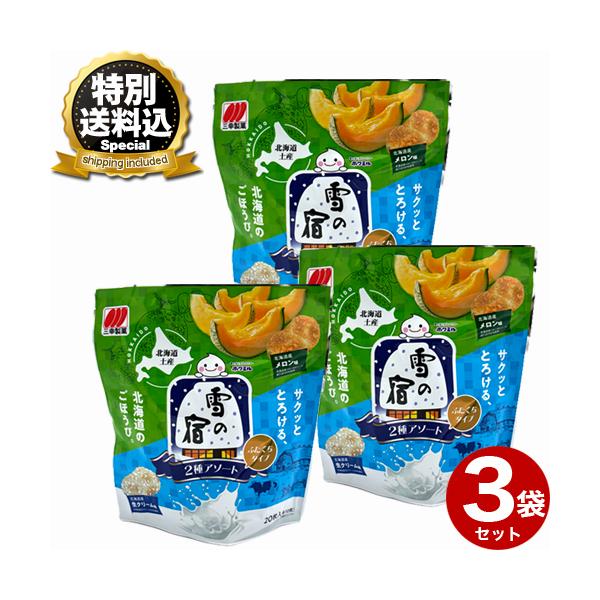 <特別送料込>三幸製菓 雪の宿2種類アソート20枚入り(メロン味10名)×3袋(生クリーム味10枚) 同梱可 スナック お菓子 ギフト プレゼント 北海道 お土産