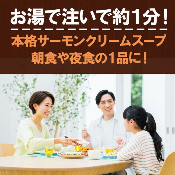 北海道産の鮭の旨みがたっぷりのスープです。お店のような味をご自宅で!お湯を注いでたった1分であつあつスープの出来上がり!