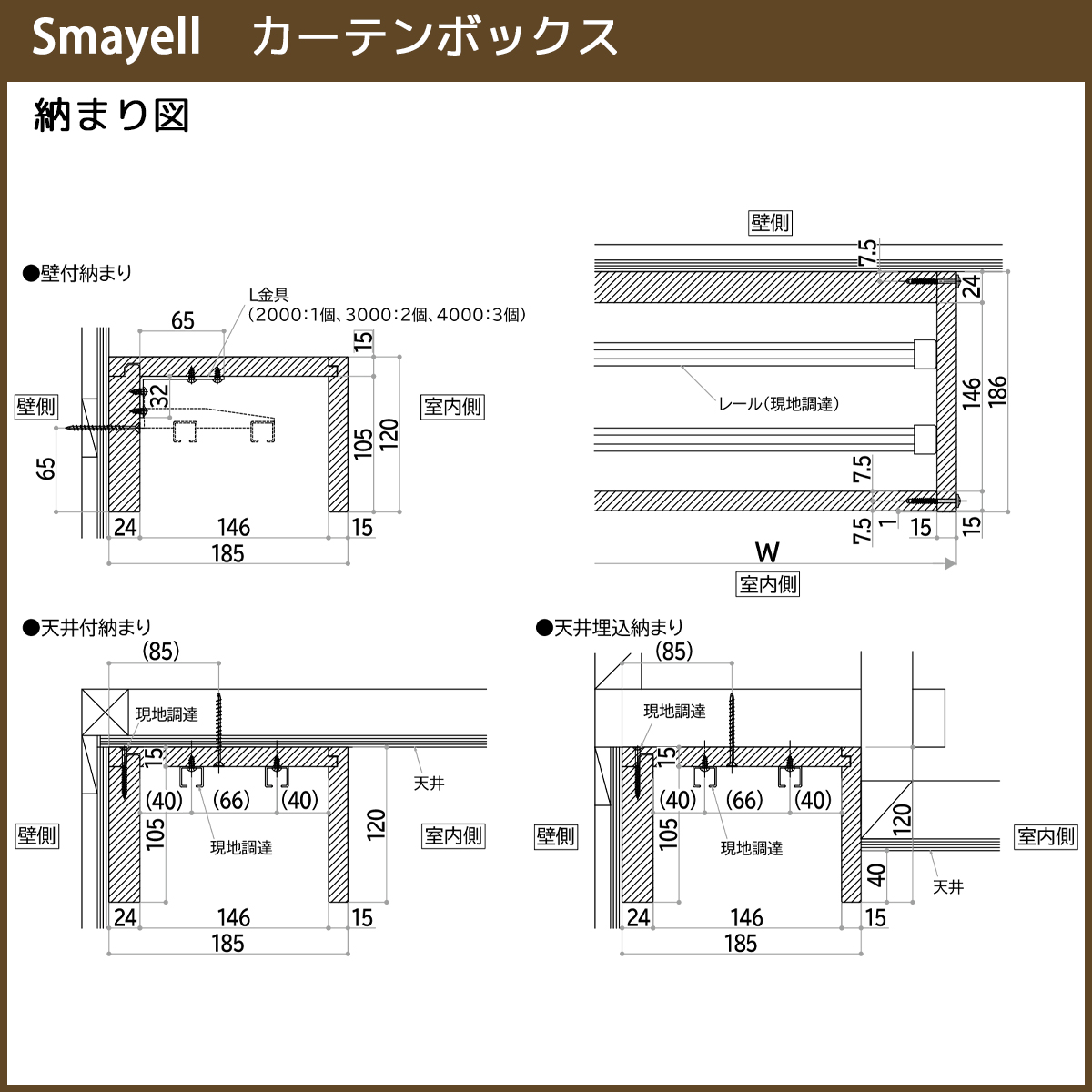 YKKAP スマエル 造作材 カーテンボックス カーテンボックス本体 : 側板外寸法 W=2030mm