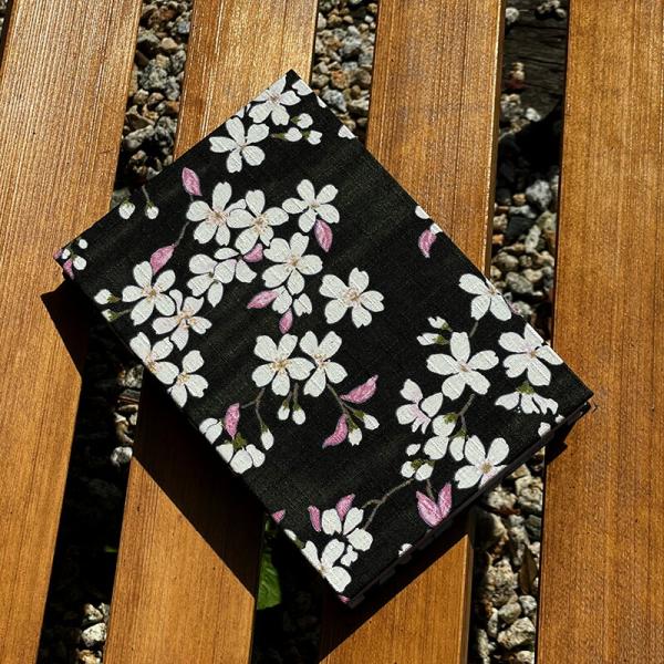 三十三ヶ所納経帖 花桜(黒/水色) 納経帳 御朱印帳 朱印帳 大判 蛇腹 三十三所 カバー付 表題ラベル付 かわいい おしゃれ ネコポス送料無料
