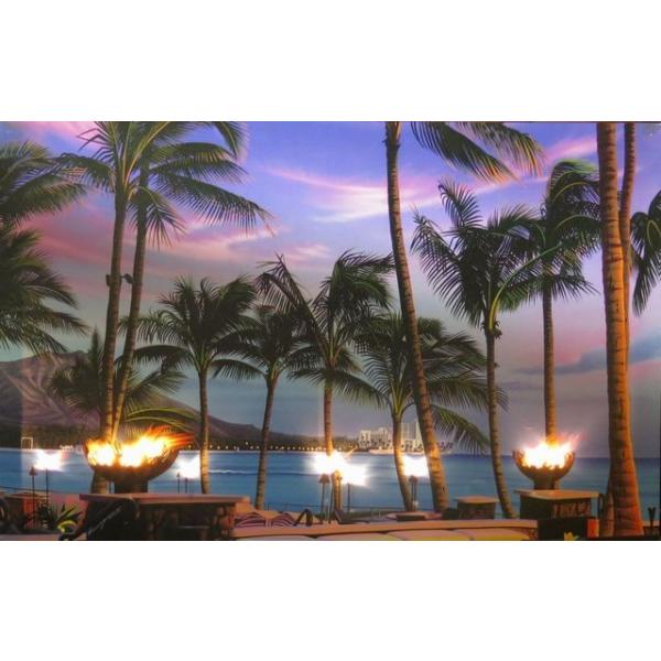 ハワイアン雑貨 インテリア ハワイアン 雑貨 栗山義勝 点灯式 キャンバス パネル絵 (ラムファイヤー&ダイヤモンドヘッド) ハワイアン雑貨 ハワイ 照明