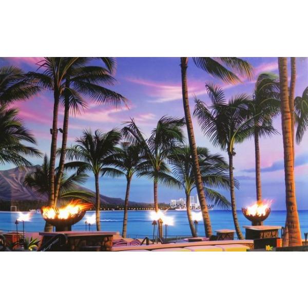 ハワイアン雑貨 インテリア ハワイアン 雑貨 栗山義勝 点灯式 キャンバス パネル絵 (ラムファイヤー&ダイヤモンドヘッド) ハワイアン雑貨 ハワイ 照明