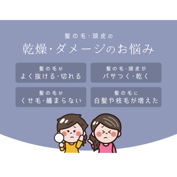 女性の髪の代表的お悩み、抜け毛切れ毛髪のパサつき、くせ毛