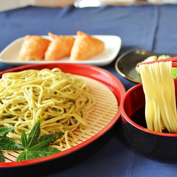 ほんのり抹茶が香る…「茶そば」セット!袋を開けると茶の香りが広がります♪