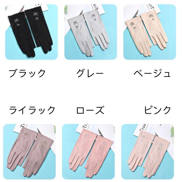 蝶 くま 無地 滑り止め 紫外線対策 通気 薄手 大人かわいい ショート レディース 手袋 指なし スマホ対応 指あり UV カット 運転用 おしゃれ UV手袋 指切り 刺繍