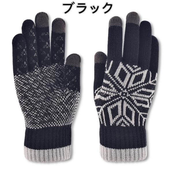 雪花柄 スマホ対応 裏起毛 春 秋 冬 用