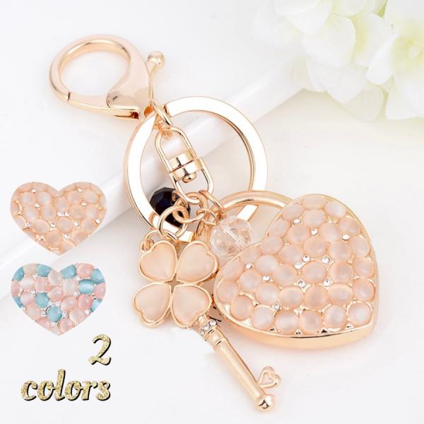 ハート 四葉 クローバー レディース バッグチャーム キーホルダー キラキラ 輝く ラインストーン 開運 誕生日 結婚 プレゼント 可愛い おしゃれ 幸運の四つ葉