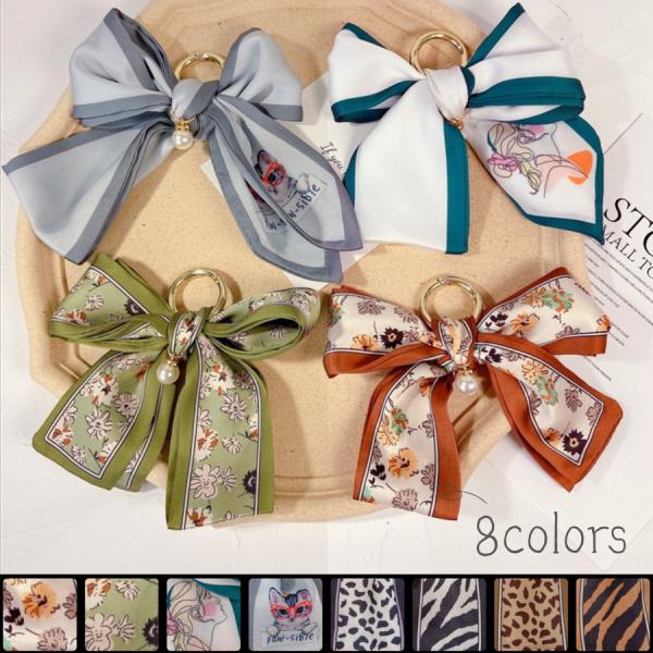 虎柄 豹柄 スカーフ リボン パール バッグチャーム おしゃれ キレイ 人気 可愛い キーホルダー キーリング チャーム 大きめ 母の日 誕生日 ギフト 春 夏 秋 冬