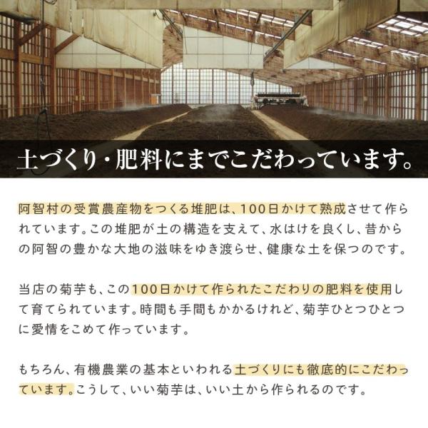 阿智村の澄み切った空気、美しい土壌で、肥料にまでもこだわり抜いて作られた菊芋を使用しています。