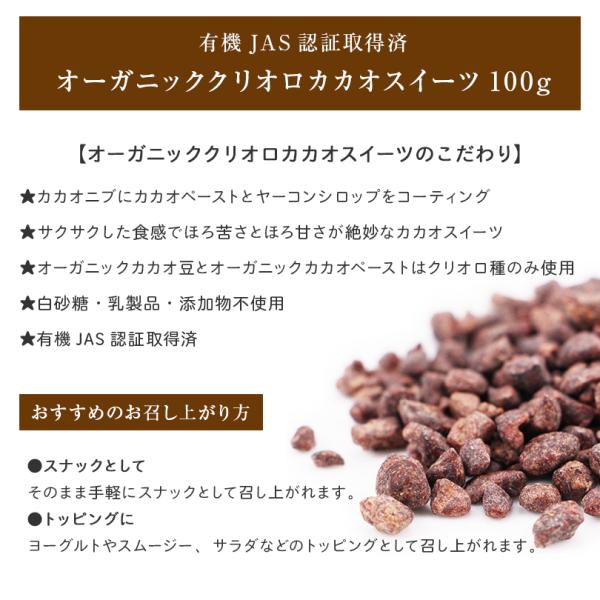 オーガニック クリオロ カカオ スイーツ カカオニブ 100g×2袋 有機 JAS 認証 取得済 送料無料