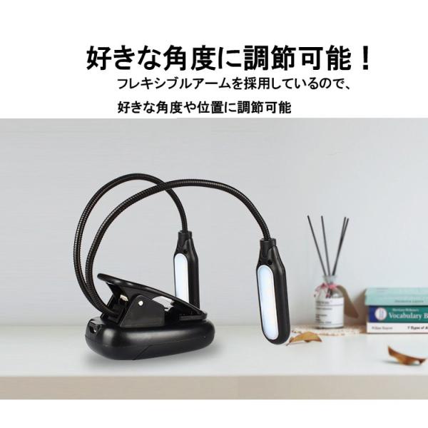 クリップ型フレキシブルLEDライト 5灯LED 譜面台 デスクライト 方向調節自由 USB充電/乾電池2種類 点灯モード調節 暖色/白色切替可 HOP-BOOKUSB55