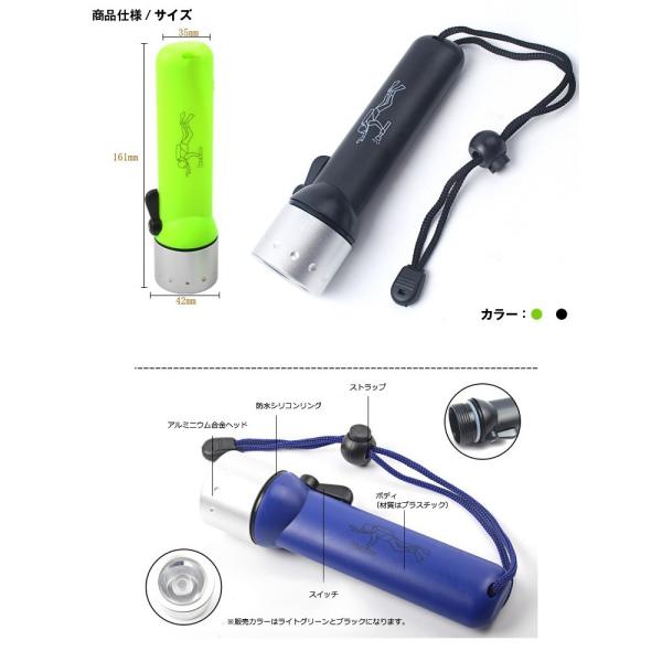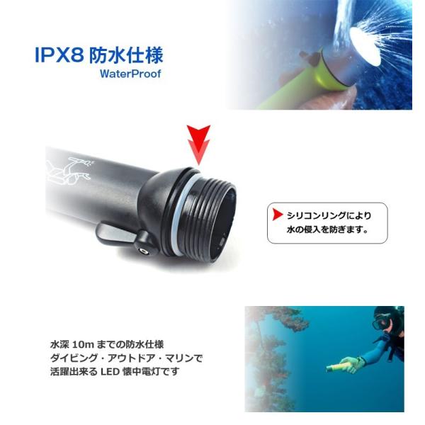 ダイビング懐中電灯 IPX8防水 LEDライト ダイビングライト 180ルーメン 懐中電灯 潜水ライト 水中懐中電灯 自転車用ライト ストラップ付 20M照射 HOP-SFHDLED43