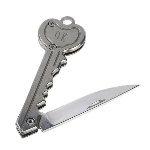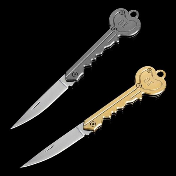 キー型ミニナイフ 折畳み式 全長126MM 高硬度ステンレス刃 キーホルダー型 ポケットナイフ ミニカッター 小型ナイフ 常備しやすい鍵型 HOP-SLOK03