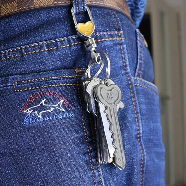 車のキーやストラップなどに取り付けて手軽に携帯できる、ミニサイズのキー型折畳みナイフです。