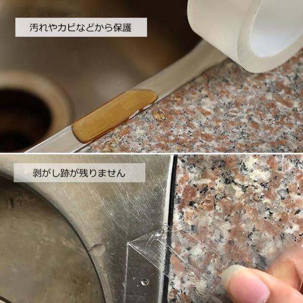 ガスストーブ、シンク、洗面台、浴槽などのフチと壁の貼ることで、カビや汚れ、油などから台所、浴室を守ります。