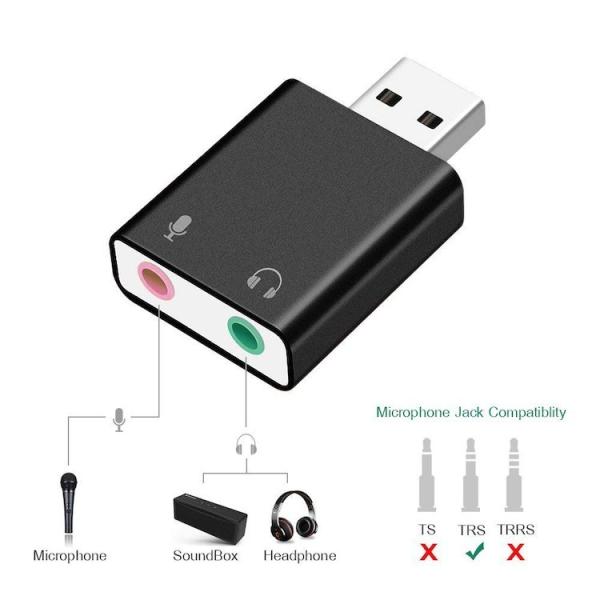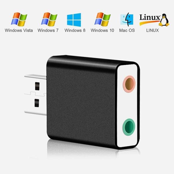 USB外付けサウンドカード USB⇔オーディオ変換アダプタ 3.5MMミニジャック ヘッドホン出力/マイク入力対応 小型軽量 5.1CH/3Dサラウンド対応 HOP-PFUOS15015