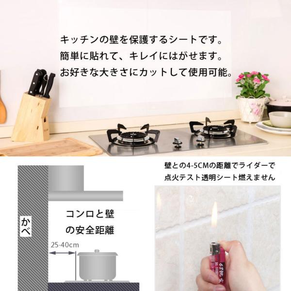 ・キッチンの壁を保護するシートです。簡単に貼れて、キレイにはがせます。