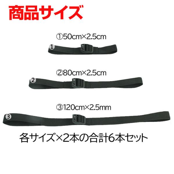 荷締めベルト 6本セット(3サイズ×2本)収納袋付き コンプレッションベルト バインドベルト スーツケース テント ワンタッチ式 固定ベルト HOP-SDK06S655