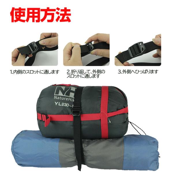 テントやシュラフ、マット等アウトドア製品を縛ってコンパクトにまとめるグッズです。