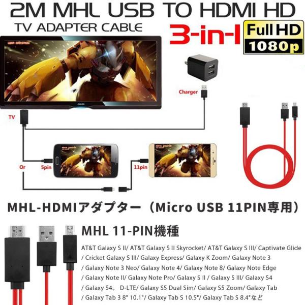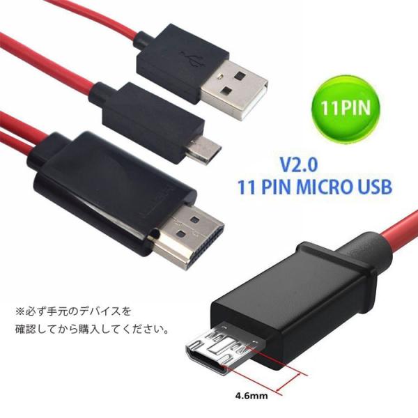 HDMI変換ケーブル 1080P対応 約2m microUSB-HDMI変換 スマホやタブレットの動画をテレビ大画面で鑑賞 給電用USBケーブル付 11pinタイプ専用 HOP-MCHD11PIN