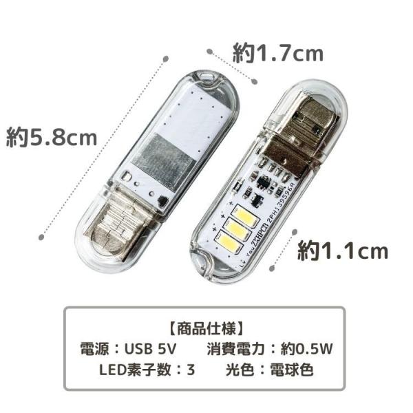 USB給電LEDライト スティックライト タッチ操作式 小型LEDライト キャップ付き ストラップ穴付き キーホルダーに掛ける 携帯便利 3灯 高輝度 HOP-NLUSB3LED
