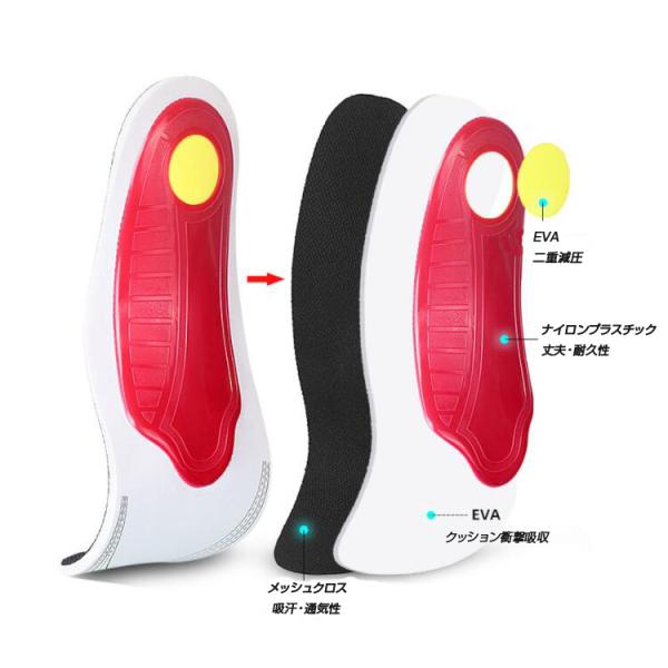 アーチインソール 3D構造 EVA樹脂 扁平足悩みの方に 土踏まず 中敷き 衝撃吸収 快適さ アーチ型 扁平足サポーター 男女兼用 サイズ調整可 立ち仕事 HOP-ARCIS100