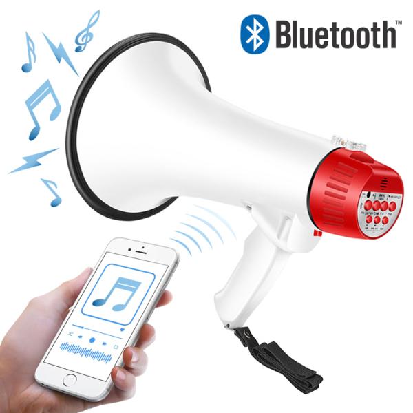 多機能ハンドメガホン 30W 充電式 ハンディ拡声器 マイク録音/再生機能 乾電池使用可 microSD/USBメモリ Bluetooth対応 サイレン音付 イベント HOP-LPHM200TU