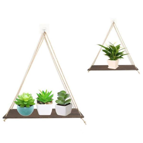 ウッドハンギングシェルフ ウォールシェルフ 飾り棚 壁掛け棚 吊り下げ棚 壁掛けフック付き インテリア おしゃれに収納 観葉植物/雑貨/ツールなどに HOP-WHS3514