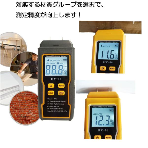 デジタル木材水分計 木材 紙 床 壁 段ボール などの含水率検出器 高精度 簡単測定 ホールド機能付き モード選択可 水分チェッカー ピンタイプ HOP-WWHY16