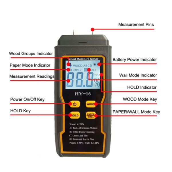 さまざまな木材/紙/壁などの含水率の測定に使用できます。