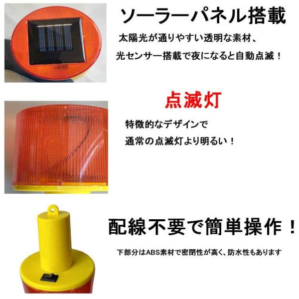 ソーラー充電式 警告灯 省エネ 赤色点滅 カットコーン用 赤色ライト点滅警告 農場動物被害 野外 倉庫 車庫の防犯 工事現場 非常信号灯 自動点灯 HOP-SALED1234
