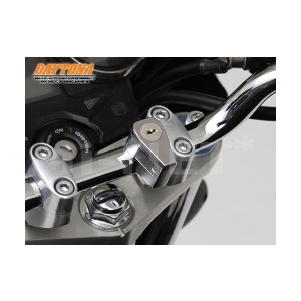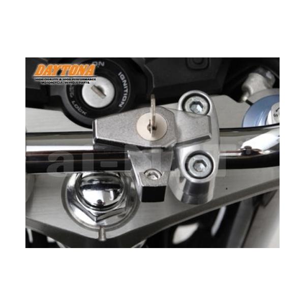 純正ヘルメットロックがない車両や、バック等で使えない車両にオススメ。ステーは標準ハンドル用、インチハンドル用どちらも付属しているため、国産車からハーレー等幅広く使用可能。