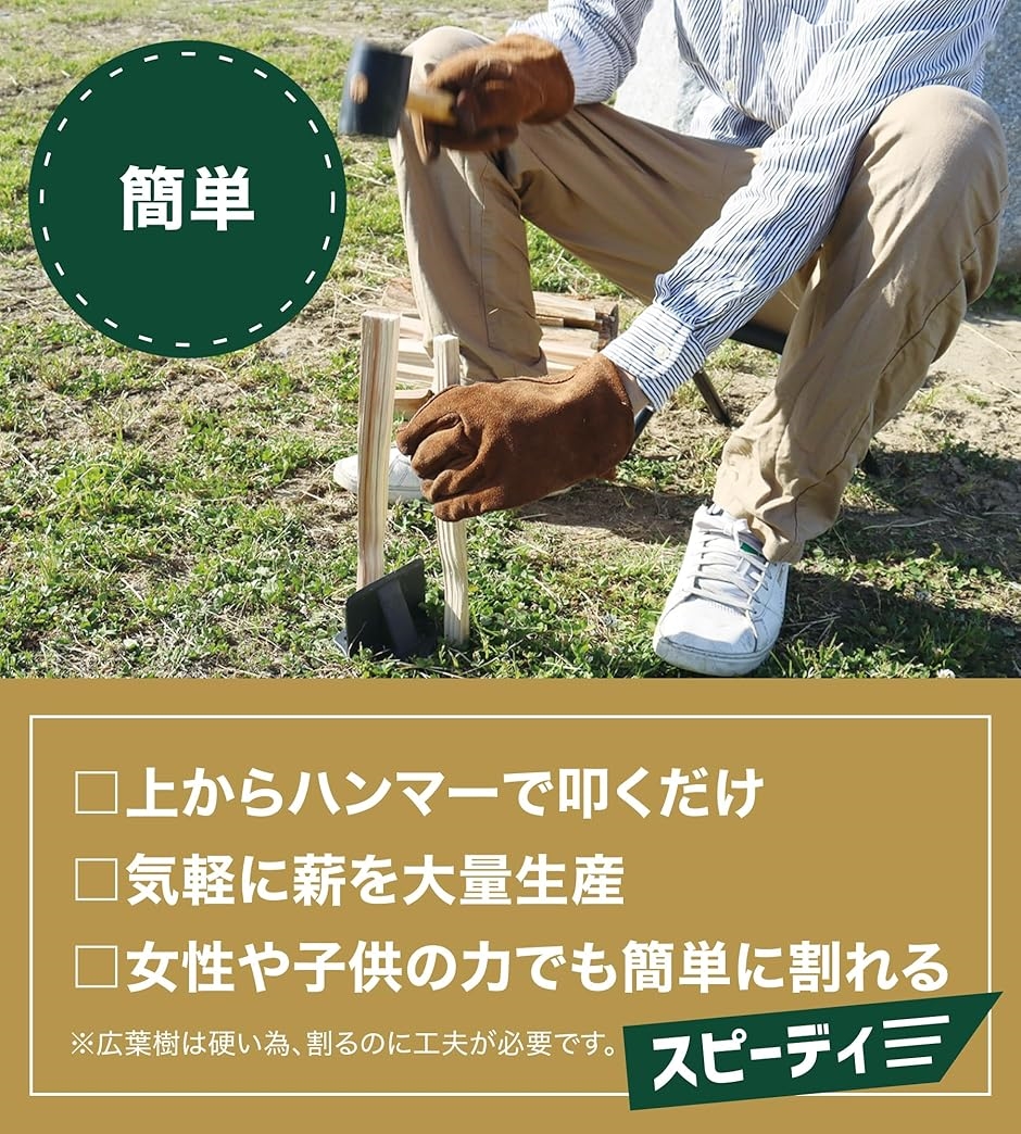 安全性: 斧を使うよりも安全で、女性や子供でも簡単に薪を割れるコンパクトなツールです。